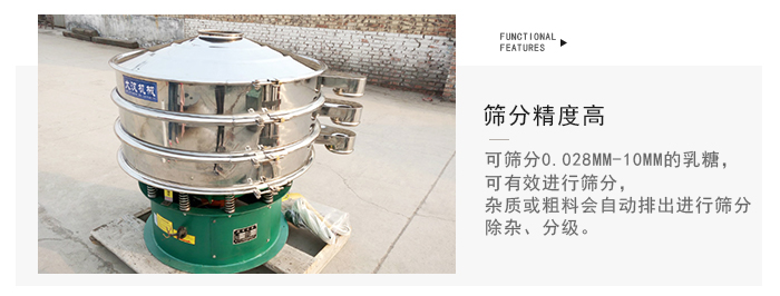 2、體積小,不占用多余空間,移動(dòng)方便。篩網(wǎng)網(wǎng)架為子母網(wǎng)結(jié)構(gòu),篩分乳糖可單層、多層使用,一次多規(guī)格篩選。