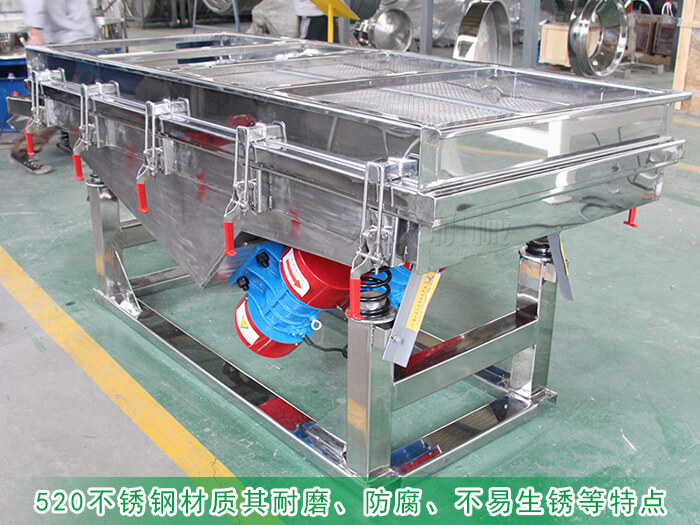 質(zhì)量好不好就要看看材料的選擇是不是好的,新鄉(xiāng)大漢機(jī)械的不銹鋼直線篩的,材質(zhì)使用的都是520不銹鋼材質(zhì)。其不僅擁有耐磨的性質(zhì),還有防腐,不易生銹的特點(diǎn)。
