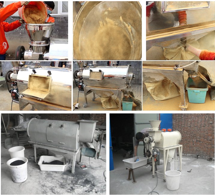 已成功應(yīng)用于120-180目輕鈣、300目重鈣、400目活性鈣、300目山楂粉、320-500目鋅粉、500目氧化鐵黑等物料,良好篩分取得了效果。測得篩網(wǎng)面積每平方米每小時產(chǎn)量約1噸,經(jīng)測篩分精度在95%以上,空氣含塵量小于10mg/m3。