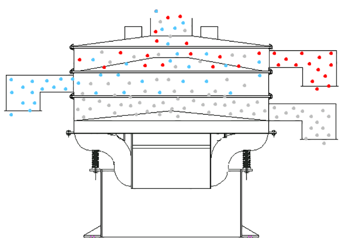 2、回旋式逆向篩分:物料篩分由細(xì)→中細(xì)→中→粗的方式篩分,粗物料起到一定的清潔網(wǎng)孔的作用。