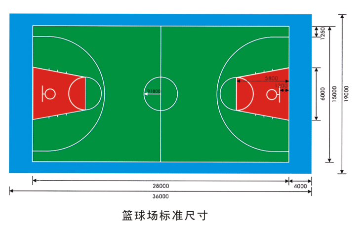 在建造籃球場地時(shí),球場區(qū)域要達(dá)到28×15m(包含副場32×18),再加上周圍區(qū)域,總面積要達(dá)到32.1×22.1m或18m(18m為最小寬度)。這樣的場地可以適應(yīng)各種地方級的比賽。如果利用現(xiàn)有籃球場地進(jìn)行各級別的國內(nèi)比賽,場地的長度和寬度都可以根據(jù)實(shí)際情況比標(biāo)準(zhǔn)小一些,但是不能太多;場地長度最多可縮小4m,寬度最多可縮小2m,而且場地長度和寬度必須成比例(2:1)的縮小(例如總面積可縮小為26×14m)。按照歐洲籃球聯(lián)盟修改后的規(guī)則,對于26×14m的場地,如果籃扳和支架是固定設(shè)置的,在球場長度不變的情況下,球場寬度可放大到15m。