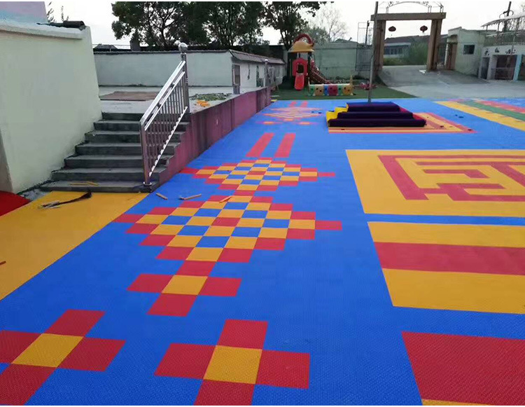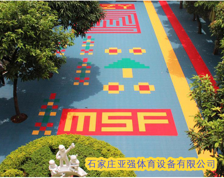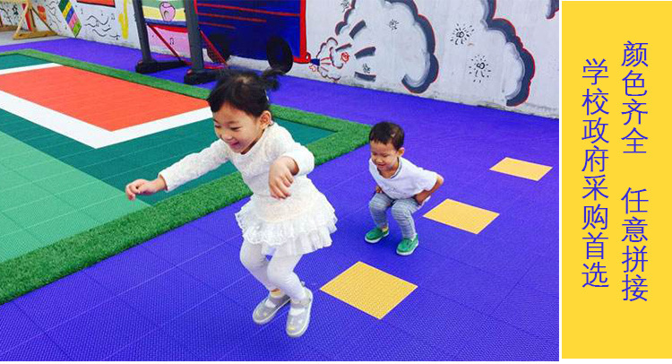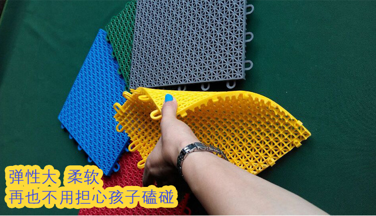 6.安全防護(hù):全眾懸浮式拼裝地板特有的專利設(shè)計(jì)(拼裝地板底部跟支撐柱支撐,拱形排水槽,邊緣采用公扣母扣銜接)很好