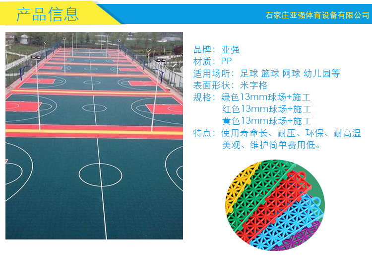 6.安全防護:全眾懸浮式拼裝地板特有的專利設(shè)計(拼裝地板底部跟支撐柱支撐,拱形排水槽,邊緣采用公扣母扣銜接)很好