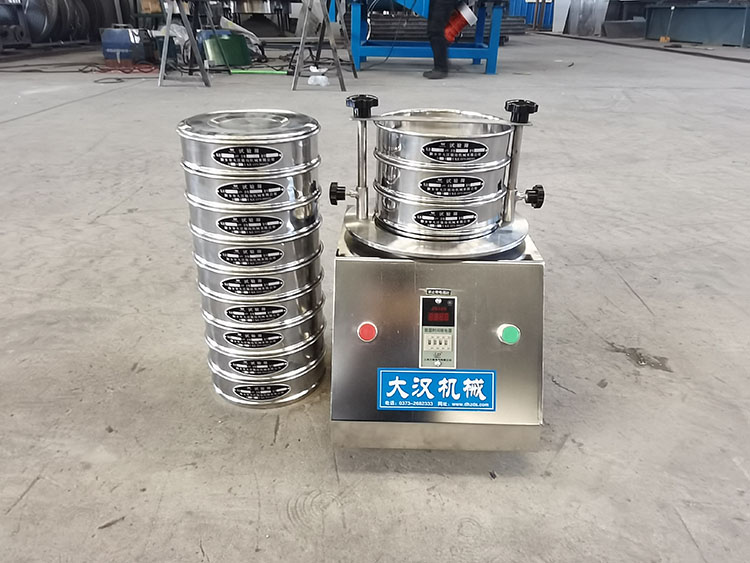 電磁試驗(yàn)采用電磁振動(dòng)器作為振動(dòng)源,電磁振動(dòng)器的振動(dòng)帶動(dòng)篩機(jī)低位振動(dòng),再通過底座傳遞到底座上由粗到細(xì)排列的一組標(biāo)準(zhǔn)試驗(yàn)篩,同時(shí)安裝在下部的振動(dòng)電機(jī)(或往復(fù)機(jī)構(gòu))將物料精選篩分,物料在標(biāo)準(zhǔn)檢驗(yàn)篩的篩面上振動(dòng),使小于篩網(wǎng)孔徑的物料顆粒篩入下層檢驗(yàn)篩,層層篩分,只有試驗(yàn)篩的每一層都留有相同的粒徑,以達(dá)到不同的粒徑分離。