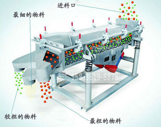 DZSF系列直線篩為雙振動電機驅(qū)動。當兩臺振動電機做同步、反向旋轉(zhuǎn)時,其偏心塊所產(chǎn)生的激振力在平行于電機軸線的方向相互抵消,在垂直于電機軸的方向疊為一合力,因此篩機的運動軌跡為一直線。兩電機軸相對篩面在垂直方向有一傾角,在激振力和物料自重力的合力作用下,物料在篩面上被拋起跳躍或向前作直線運動,從而達到對物料進行篩選和分級的目的。適用于粒度在0.074—5mm,含水量小于7%,無粘性的各種干式粉狀或顆粒狀物料的篩分。大給料粒度不大于10mm.